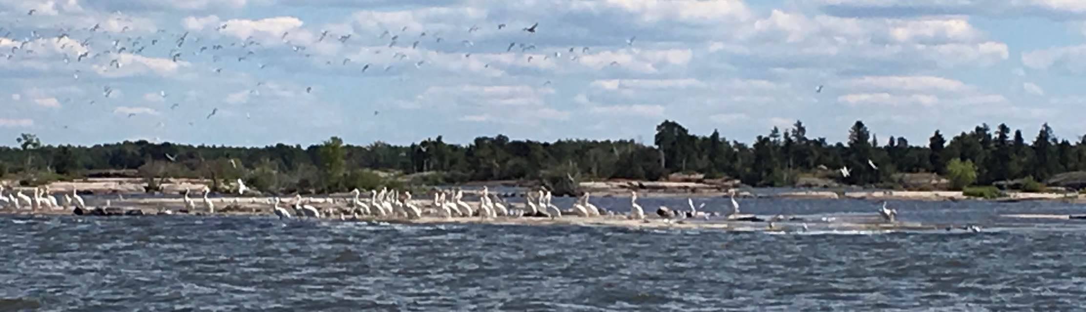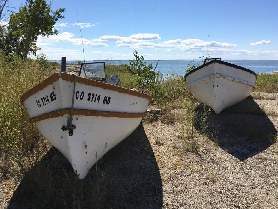 Now we are on an expedition. We are going to go from black bear to rabbit point. It is about 4 miles. If there is any hint of a wind coming up I am reluctant to take our small boat across the lake. But today is a perfect day. We arrive in Princess Harbour. Here the beauty of today is enhanced by the artefacts from the past. My Ottawa friend George Hunter is breathing in the experience. He sees the 45-gallon drums. There is the snowplough that made it possible for the tractor trains to move across the ice. There is a roller that enabled every box of supplies to move from the boat to the dock, And every fish box to move from the dock to the boat efficiently. the occasional mariner from the South has found their way to this Idyllic place to hide at peace from the world for a few days. I do not know all the families who live there but I do know that it is been home to the Anderson family for decades. As we make our way back my long friend and neighbour, Ingi Ingaldson is ” contended as he watches the pelicans on the reef lapping up the sun and licking up the fish. Now my friend John Restall offers this quiz-what difference do you observe in the landscape topography across the short distance between the east and west shore of the lake?